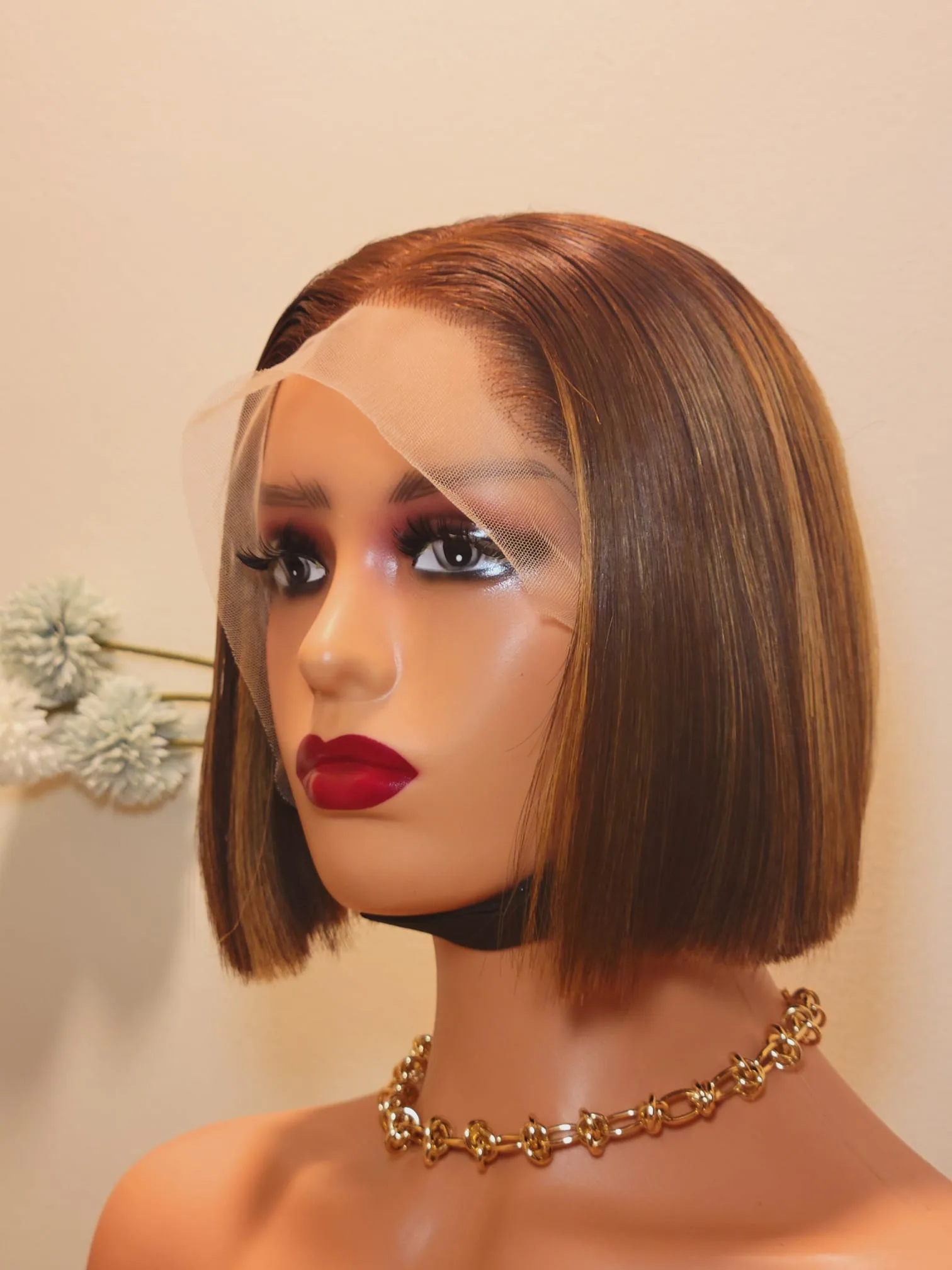 5×5 Invisible HD Glueless Human Hair Wig – Brown Highlight, Wear & Go